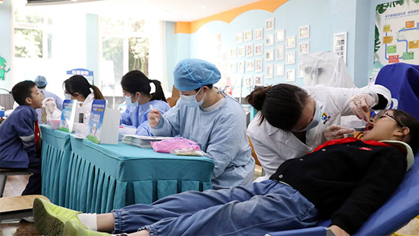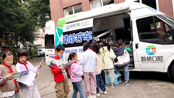 作为项目定点单位,新桥口腔组建的以儿童早期矫正专科医生为首的专项医疗小组,将口腔诊疗车开进校园,为校内三年级学生开展口腔健康检查和窝沟封闭防龋治疗。