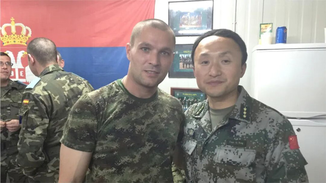 李峰与救治的塞尔维亚士兵合影