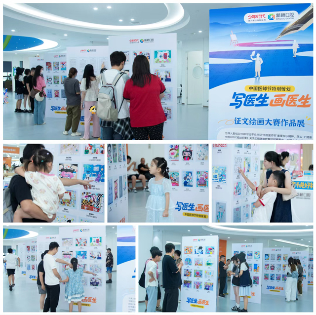 同期举办的“写医生 画医生”征文绘画大赛,则是一次艺术与健康的创新融合。通过孩子们独特的视角和笔触,记录他们对医生职业的观察与理解,在传递医者仁心的同时,引导青少年树立正向的职业观。大赛遴选的157件优秀作品,在第八个中国医师节前夕于新桥口腔成都总院悉数展出,为白衣天使献上温情礼赞。值得一提的是,该展览获央视新闻重点关注和刊载报道,四川电视台、成都电视台、封面新闻、四川观察等主流媒体共同传播,让这份童真献礼温暖传递,掀起致敬医者仁心的热潮。