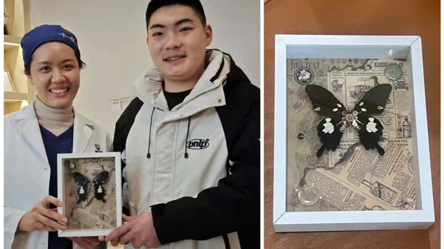 【新桥口腔成都高新院区】一位大男孩将精心制作的手工艺术品送到正畸专科王亚楠医生手中,精巧构思背后是漫长矫正路上的暖心陪伴。